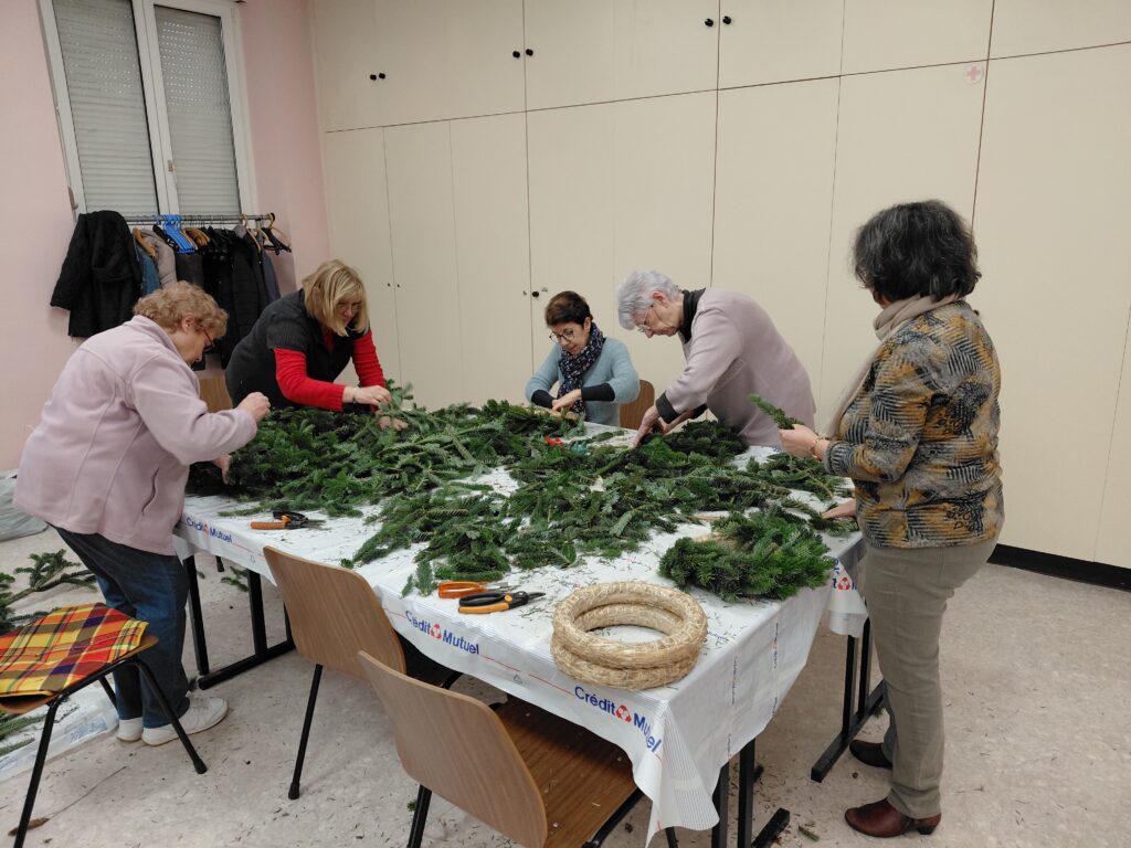 Fin du mois de novembre un petit groupe de paroissiens et paroissiennes sous la houlette de Malika MOSSO se sont rencontrés pour confectionner les couronnes de l’avent