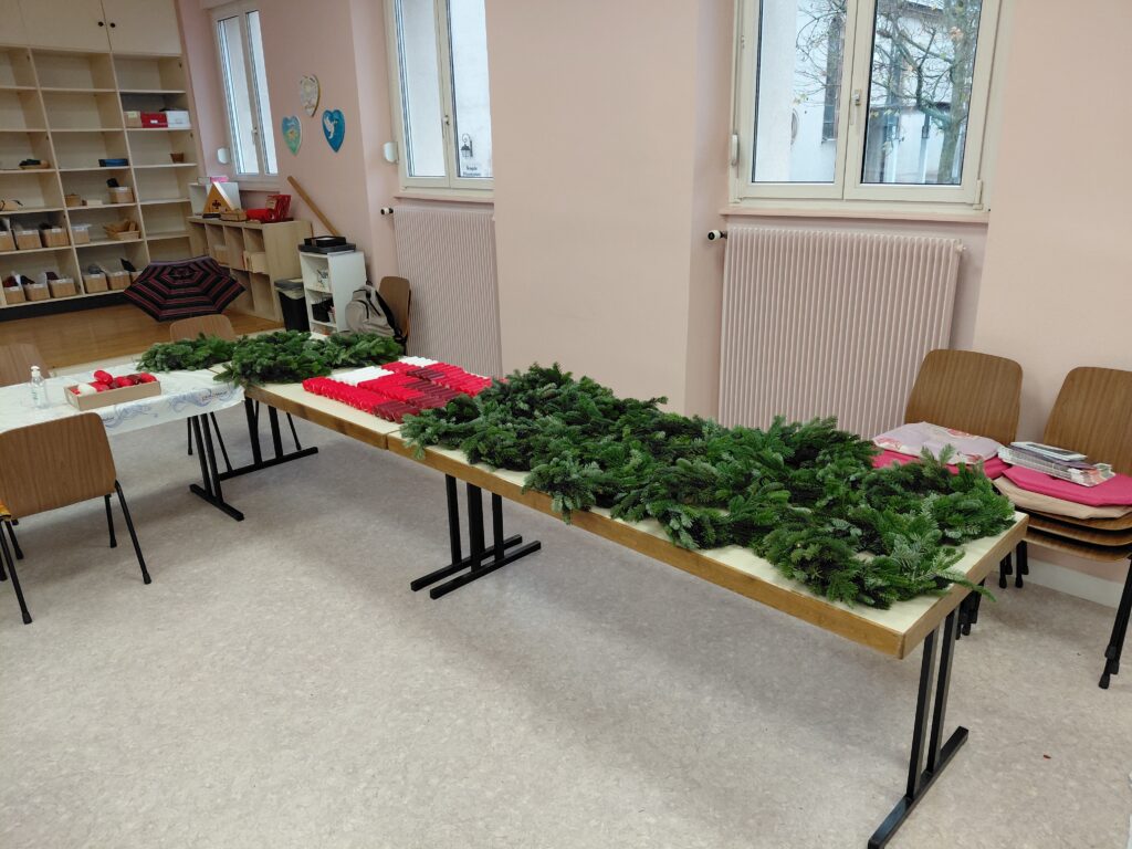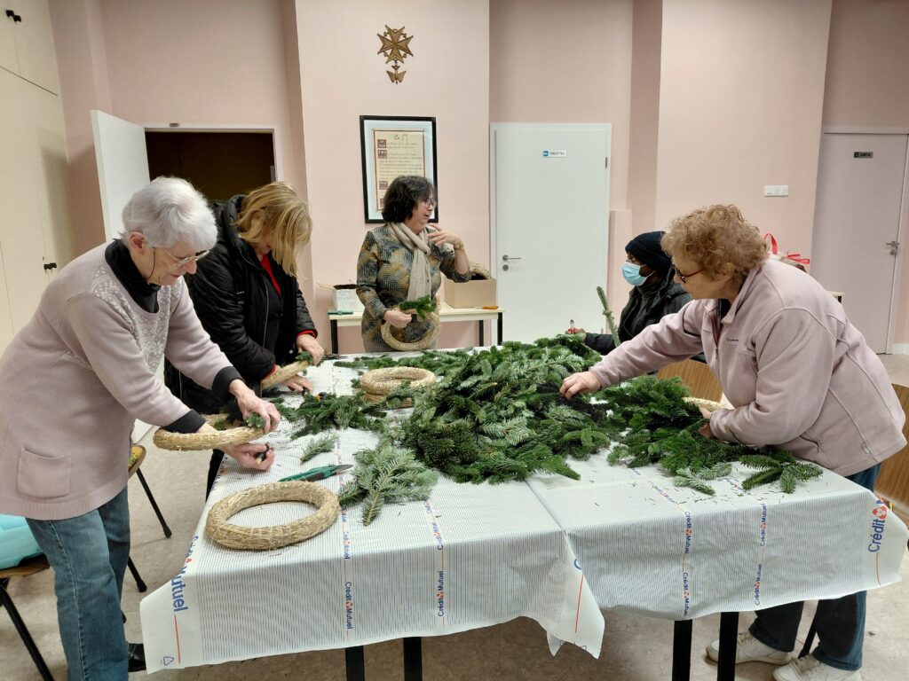 Fin du mois de novembre un petit groupe de paroissiens et paroissiennes sous la houlette de Malika MOSSO se sont rencontrés pour confectionner les couronnes de l’avent